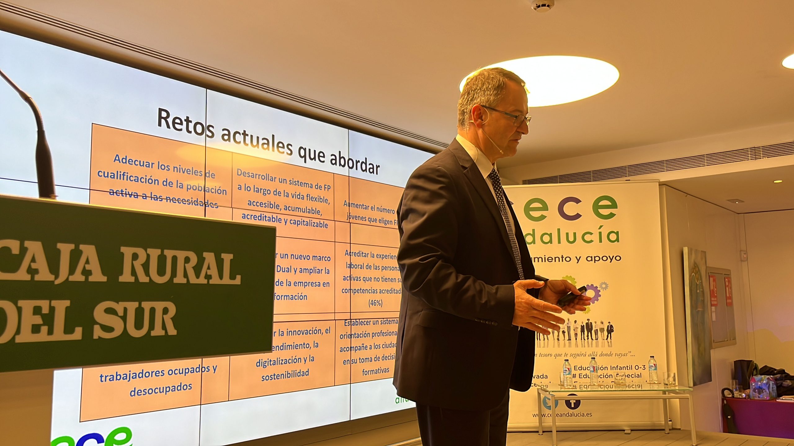 En un salón de actos de la Fundación Caja Rural casi a rebosar se ha celebrado en la tarde del miércoles 16 de marzo una Jornada de análisis sobre la incidencia de la nueva ley de Formación Profesional en el sector. Un evento donde no faltaron a la cita empresarios, directores de centros formativos y administraciones.